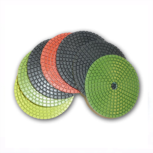 Diamond polishing pads are resin bonded diamond abrasives used for the grinding and polishing of natural stone, engineered stone and concrete. Various types of resins are used along with synthetic diamond powder to make the diamond polishing pads that are so popular today. Diamond polishing pads are used with hand polishing machines, angle grinders, floor polishing machines and slab polishing machines. They are used for polishing floors, edges, corners, mouldings etc. Diamond polishing pads can be flexible or rigid based on the application. Diamond polishing pads can have a plastic holder or a velcro backer based on the type of machine they need to be attached to. Diamond polishing pads are mainly used for grinding and polishing of granite, marble and concrete. But special types of diamond polishing pads are also made by us to grind and polish limestone, sandstone, cementitious terrazzo, and epoxy terrazzo. Feel free to browse through all the options and if you're still confused just send us a message with your requirements and we will tell you which of our diamond polishing pads best suits your requirements.
